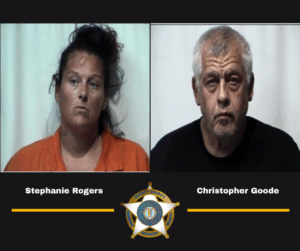 On August 22, 2025, at approximately 3:32 PM, deputies conducted a traffic stop on a vehicle reported stolen. During the stop, 43-year-old Stephanie Rogers of Murray, KY, and 59-year-old Christopher Goode of Hopkinsville, KY, were arrested. Both individuals were transported to the Christian County Jail and charged with Theft of a Motor Vehicle.